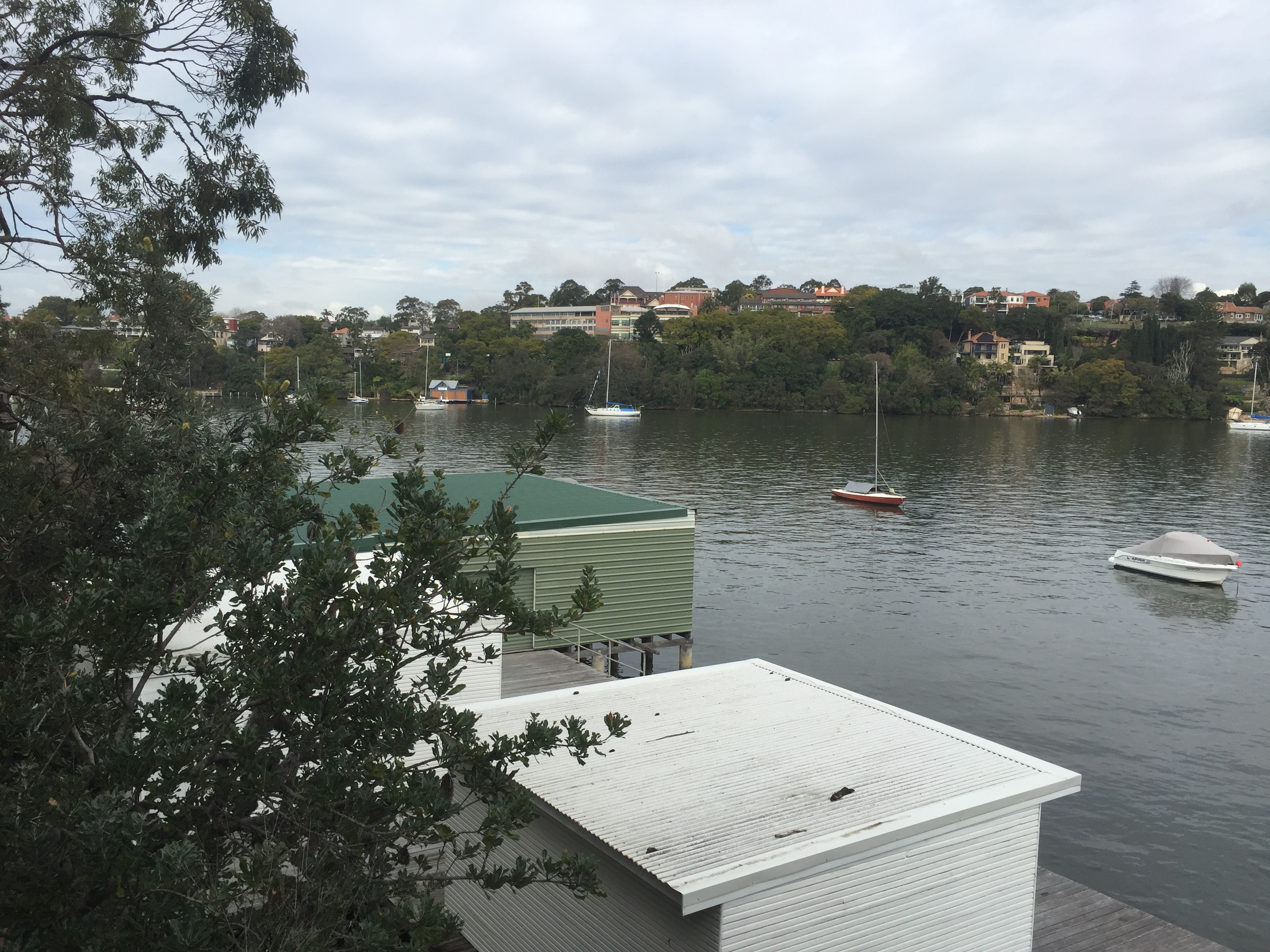 Rowing boat shed, looking across to Marist Sisters College, Woolwich.